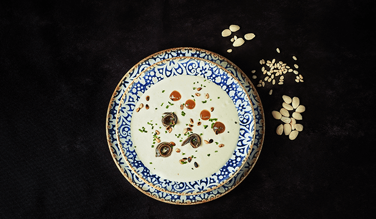 Mazamorra de ajo con piñones y almendras